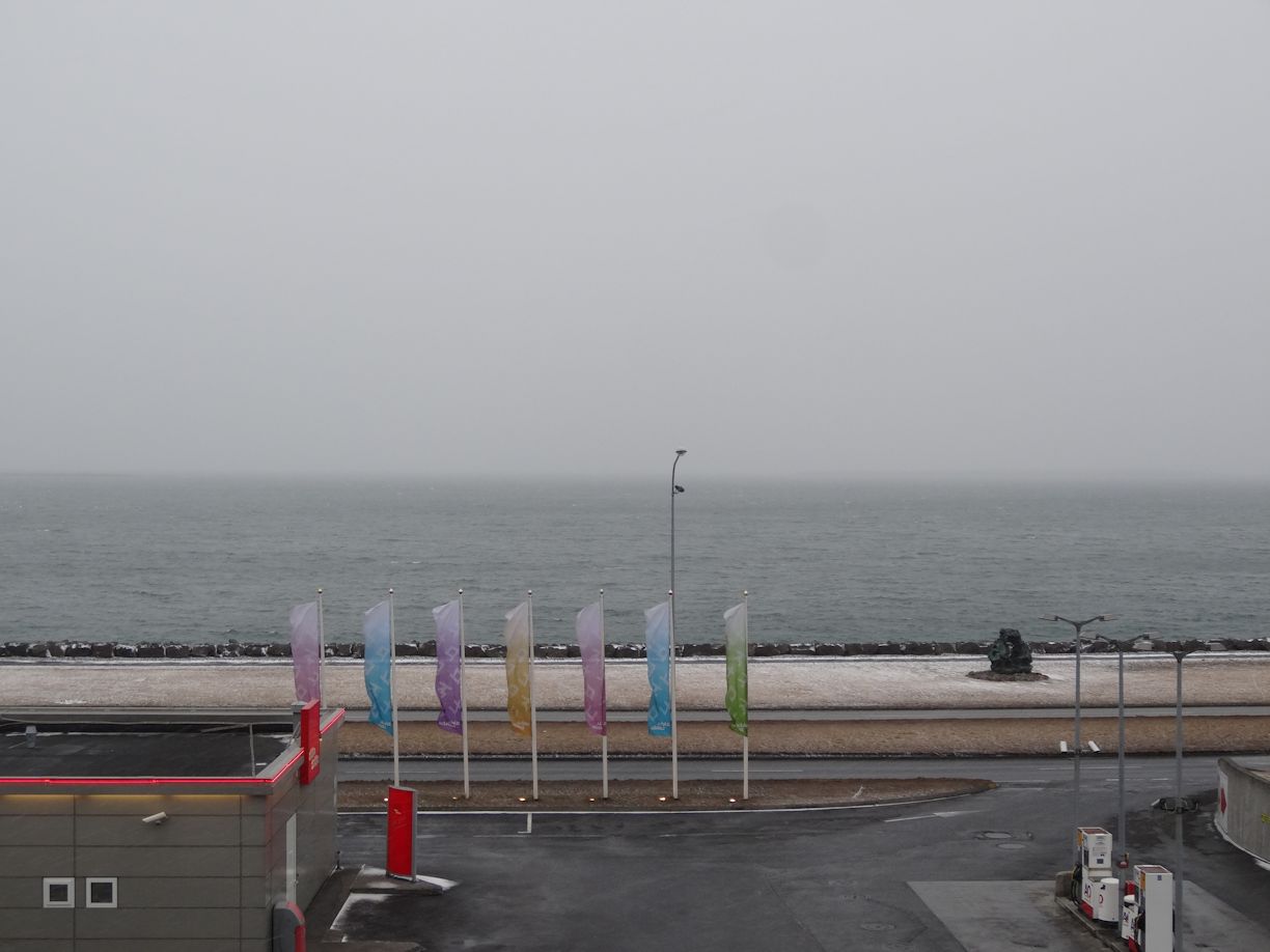 …and speaking of storms, on Tuesday morning when woke up I could see the mountains across the bay, but by lunchtime it was all covered in cloud and had started snowing. This morning, a blanket of snow covered everything. The weather can really change quite quickly here, and will no doubt keep us on our toes along the way 😉